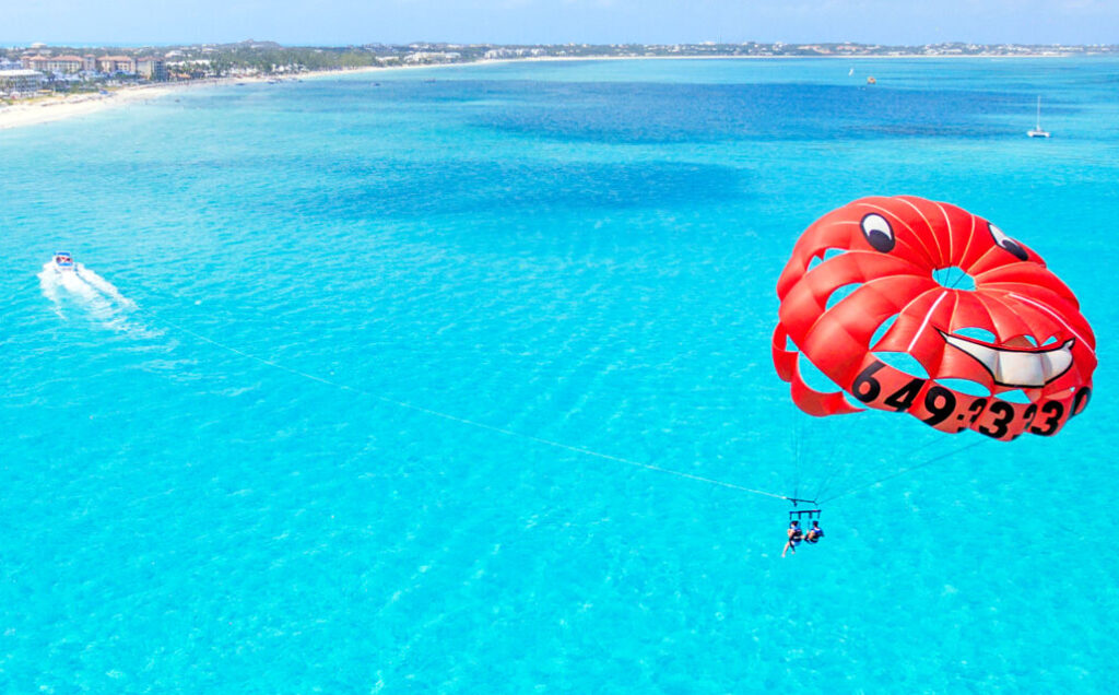 Rise above paradise as you glide effortlessly by parachute, capturing stunning views of the islands below.
